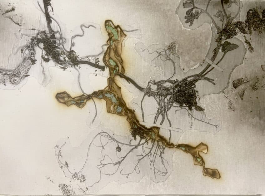Inumaru engages with the vast and universal theme of “light,” approaching it as a tangible substance through diverse forms of expression such as painting, drawing, performance, and installation. In recent years, his work has centered on two primary techniques: a series of drawings in which parts of images on paper are scorched using sunlight concentrated through a magnifying glass, and a series of paintings that reinterpret “color” as “light,” where pigments become “powder of light” and paints are imagined as “paste of light” by mixing pigments with acrylic resin.