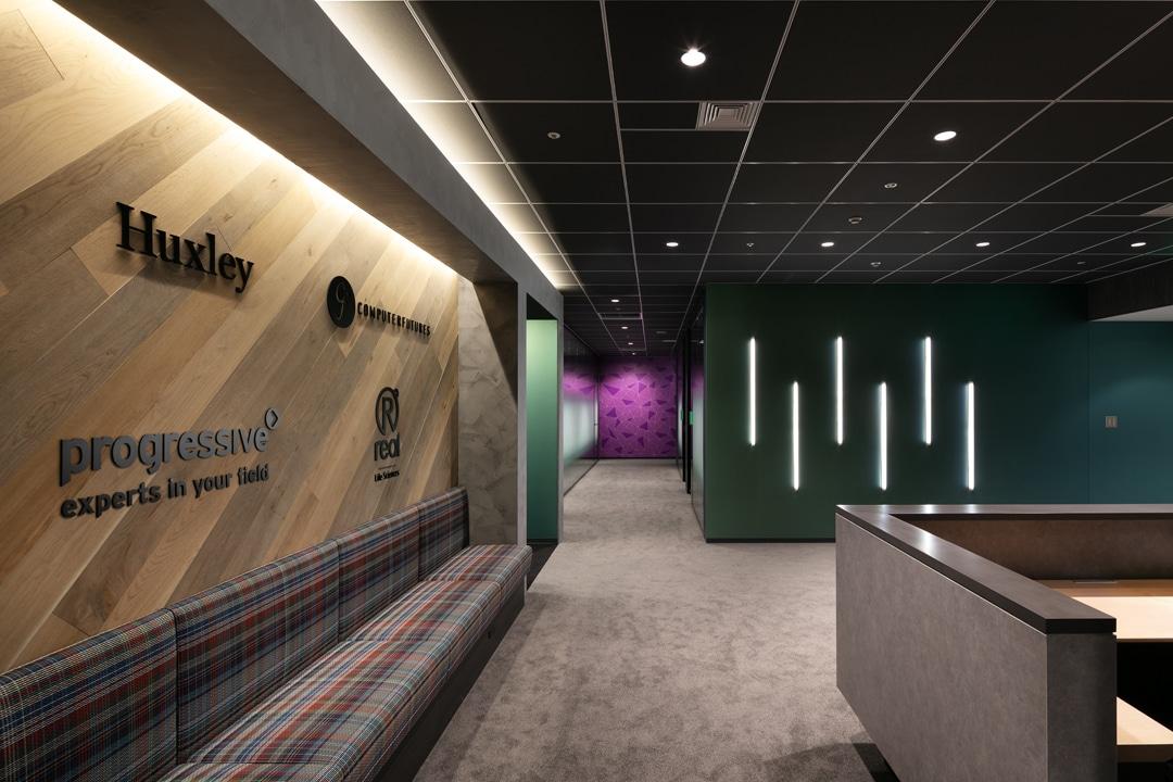 The concept is inspired by the fusion of Western and Japanese culture into an open agile working environment that focuses on recruitment for the STEM industries. The project is highlighted by an ambient reception space with spot-lighted sub brands and a collection of minimalist meeting rooms. A futuristic portal then transports you to a cozy social hub complete with a billiard table, pub bar, and poker table expressing the Client’s deep UK roots.
